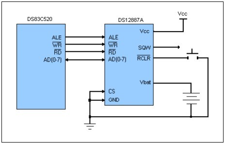 The DS12887A real time clock plus RAM is designed to be a direct replacement for the DS1287A. The DS12887A is identical in form, fit, and function to the DS1287A, and includes additional 64 bytes of general-purpose RAM. Access to this additional RAM space is determined by the logic level presented on AD6 during the address portion of an access cycle.