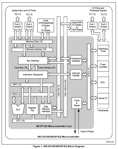 N80C251SB16 features: (1)Real-time and Programmed Wait State Bus Operation; (2)Binary-code Compatible with MCS51; (3)Pin Compatible with 44-pin PLCC and 40-pin PDIP MCS 51 Sockets; (4)Register-based MCS 251 Architecture 40-byte Register File registers Accessible as Bytes, Words, or Double Words; (5)Enriched MCS 51 Instruction Set; (6)16-bit and 32-bit Arithmetic and Logic Instructions; (7)Compare and Conditional Jump Instructions; (8)Expanded Set of Move Instructions; (9)Linear Addressing; (10)256-Kbyte Expanded External Code/Data Memory Space; (11)ROM/OTPROM/EPROM Options: 16 Kbytes (SB/SQ), 8 Kbytes (SA/SP), or without ROM/OTPROM/EPROM; (12)16-bit Internal Code Fetch; (13)64-Kbyte Extended Stack Space; (14)On-chip Data RAM Options: 1-Kbyte (SA/SB) or 512-Byte (SP/SQ); (15)8-bit, 2-clock External Code Fetch in Page Mode; (16)Fast MCS 251 Instruction Pipeline.