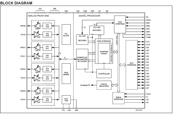 STLC5048 features: (1)fully programmable monolithic 4 channel codec/filter; (2)single +3.3V supply; (3)A/m law programmable; (4)linear coding (16 bits) option; (5)PCM highway format automatically detected:1.536 or 1.544MHz2.048, 4.096, 8192 MHz; (6)two PCM ports available; (7)TX gain programming: 33dB range: <0.01dB step; (8)RX gain programming:42db range: <0.01dB step; (9)programmable slic input impedance; (10)programmable transhybrid balance filter; (11)programmable equalization (frequency response); (12)programmable time slot assignment; (13)digital and analog loopbacks; (14)slic control portstatic (16 i/os) dynamic (12 i/os + 4 cs); (15)built-in test mode with tone generation, mcu access to pcm data; (16)64 TQFP (10X10mm) package; (17)programmable slic line current limitation; (18)programmable slic off-hook detection threshold.