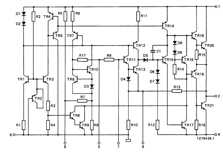 TDA2611A features: (1)possibility for increasing the input impedance; (2)single in-line (SIL) construction for easy mounting; (3)very suitable for application in mains-fed apparatus; (4)extremely low number of external components; (5)thermal protection; (6)well defined open loop gain circuitry with simple quiescent current setting and fixed integrated closed loop gain.